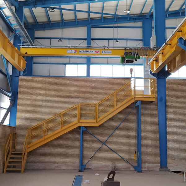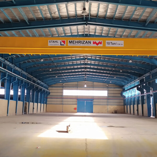 Mehrizan Industrial Development Company, relying on technical and scientific knowledge and abilities and by using the experiences of foreign and domestic experts, operates in the fields of design, construction, installation, testing, inspection and after-sales services of all kinds of industrial cranes, including overhead, gantry, semi-gantry and jib cranes in different capacities (standard and explosion-proof types) according to International standards such as FEM and DIN.